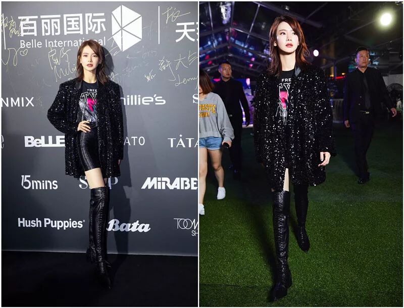 当天,七哥戚薇还穿上TATA秋冬女神系列维多利亚长靴现场带货,搭配亮片外套,帅气中带点性感,完美展现长腿及个人气场,女神范十足,吸睛指数Max!