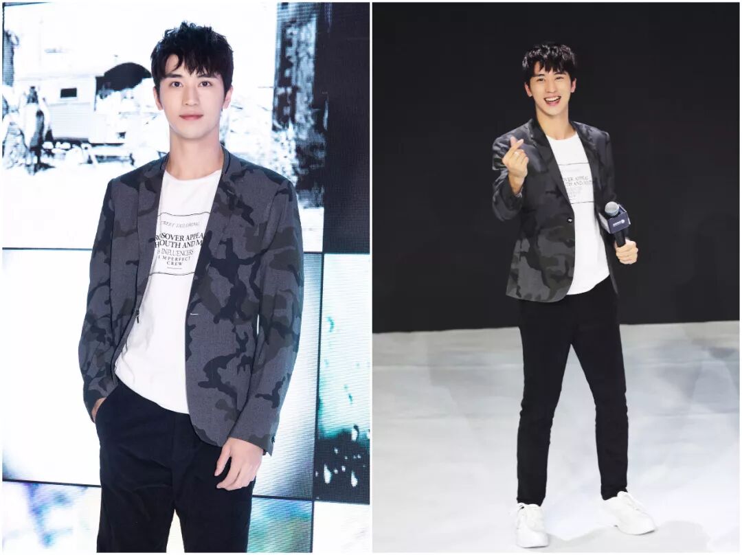 许魏洲身穿迷彩西装搭配白色球鞋,帅气有阳光,天生的衣架子使得他穿什么都很好看。