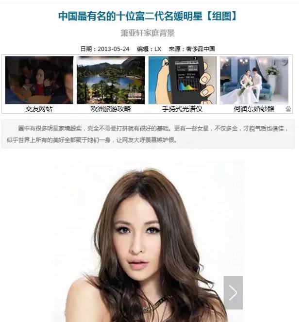 37岁的小鲜肉收割机萧亚轩,又分手了,居然有14位前任? 女人化妆护肤 港台女星 2016-01-27 17:27:54 700 创作不易,用心坚持,欢迎请BaGua喝几杯爱心咖啡!打赏并支持本文 打赏并删除本文 请点击上面 让你悄悄变美丽!对于萧亚轩的印象,你是这样的呢?还是这样的呢?鲜肉收割机萧亚轩又分手了!近日,萧亚轩透过经纪人承认与男友Elroy分手,表示两人目前已回到好朋友的关系。萧亚轩与百亿小开石正祥(Elroy)2014年相恋,男方比其小5岁,一度爱得高调。去年7月传出两人争吵,Elroy更一度取关萧亚轩。---我是14位前任的分界线---先来说说最近的这位,是与柯震东分手之后,萧亚轩火速就是和吴建豪的小舅子、百亿小开男友Elory在一起了。最近两人传出了分手的消息,而且萧亚轩也证实了。“两人目前是回到好朋友的关系,还是要认真工作认真生活,谢谢大家关心。”两人是通过吴建豪的婚礼认识的。这位Elory呢,家族资产130亿(台币,换算RMB也有小30亿啦),富二代,而且颜值也是蛮不错的!之前,有很多他和萧亚轩的恩爱照!而且这位Elory据说还是萧亚轩前任柯震东的好友。所以,大家懂的,当时两人在一起的时候,前任当然不满了。这不是赤裸裸抢哥的女友吗?不知道“朋友妻不可欺”吗?当时的柯震东蛮冲动的,取关了Elory的Ins之后,又开启了炮轰模式,在Instagram上连发两条消息。先是说“举头三尺有神明”,又是说“希望老天给作恶多端的人狠狠一耳光”……爆料君也是蛮无语的!不过最后当萧亚轩和好友在一起之后,最后这场闹剧以“萧亚轩承认恋情,柯震东大方祝福 ”结尾。何必呢? 然后就有了上边那些恩爱照!对了,这个Elroy至少比萧亚轩小了5岁…所以生活难免有吵架,有不和。中间两人也发生过取关的事情。这一次,分手了! 说实在话,萧亚轩还是蛮喜欢姐弟恋,就算比她大的,也大不了几岁。爆料君给你整理整理。【祝钒刚,和萧亚轩同龄】之前萧亚轩在温哥华留学的时候,参加某节目认识的。但是因为之后两人在不同的地方发展,而且因为萧亚轩的走红,两人距离越来越远,最终无奈分手。而且这位男主,也是不安分的主,看看这个!【隆宸翰:比萧亚轩仅大2岁】这一段恋情应该是萧亚轩爆红之后!至于为什么爱上,爆料君也没整明白。反正就是喜欢了呗。这段恋情的结局是:隆宸翰劈腿,据说还是萧亚轩的好朋友侯湘婷!!!而且还是“捉奸在床”!!!之后萧亚轩也在节目中说过这一段!你确定这不是演戏的剧情需要?!【陈冠希:比萧亚轩小1岁】这段是传闻!萧亚轩曾与陈冠希因合作MV而擦出火花,萧亚轩随即悬红1亿索“艳照”证据。不过因为艳照门,萧亚轩在博客上撰文再次否认曾与陈冠希交往,郑重声明没有拍过“艳照”或视频,并呼吁风波赶快过去。这段恋情:没有开始,自然就没有结局喽!【王阳明:比萧亚轩小3岁】说到这位王阳明,之前大家都听过什么“台湾第一帅”,睡过台湾半个娱乐圈的就是他了前一阵子终于结婚了!王阳明和萧亚轩是在2003年朋友的派对上认识的!什么一见钟情,就不多说了。听说,当然萧亚轩为了他,不惜中断如日中天的歌唱,而且还放弃了好莱坞电影《艺伎回忆录》的演出机会。就是这样的付出,之后这段恋情也只是维持了3年。不多想,应该是以男主劈腿终结了。【毛加恩:比萧亚轩小3岁】与王阳明分手之后,萧亚轩被拍到在夜店和毛加恩约会,因此传出绯闻。不过好像当事人没有承认过男女朋友关系,而且之后毛加恩也和旧爱白歆惠复合了。【李安卓:比萧亚轩小5岁】这位呢,是巴西混血男模。两人一起合作了《表白》的MV。后来还传出两人共赴泰国曼谷度假。李安卓,客串过《痞子英雄》!也是挺有颜值的。这段恋情的结局是:男主劈腿!【李威:比萧亚轩小1岁】这一次,又是在吴建豪的生日派对上,两人照片曝光,颇为亲密。当时的台湾媒体是这样说的!额,看来又是一段不长久的恋情啊!女神,求包养。。。【周汤豪:比萧亚轩小9岁】2010年,萧亚轩还曾跟资深艺人比莉的儿子周汤豪传出绯闻【梁耀基:比她萧亚轩小8岁】两人晒过亲密照!当时萧亚轩是这样说的!“……真正的男人有着雄厚的肩膀,挺直的腰杆。他有脆弱的时候但当下也试着刚毅坚强,他愿意扛下你或你的罪,愿意信守承诺,没有谎言自私,只有无尽的爱。”这也是没谁了!【马来西亚的富商刘德祖:比萧亚轩小】这是在认识柯震东之前!!马来西亚的富商刘德祖还曾在迪拜向萧亚轩求爱。当时萧亚轩拒绝了可能是颜值不够吧!【柯震东:比萧亚轩小12岁】是什么概念呢?也就是说::当24岁的萧亚轩已经出了6张专辑的时候,12岁的柯震东还在玩泥巴呢……据说还见了家长呢?最终也不知是谁劈腿了,然后就结束了。---我是如此任性的分界线---看到这么多的前任,突然觉得心好累!萧亚轩,除了那张看起来童颜的脸,还有就是:她的身价。她真的是不要嫁入豪门!她本身就很壕!萧亚轩的妈妈是当时台湾某个半导体上市公司的负责人,资产累计超过十亿。所以喽,人家萧亚轩可是名副其实的十亿千金啊!而且人家自己也努力!19岁的时候,萧亚轩经过捧红造就了王力宏,林忆莲,刘若英,李玟等人的伯乐姚谦的介绍下,正式进军娱乐圈20岁,发了自己的唱片,大火。从此,你懂得!开始人生赢家的模式。身价过十亿,还这么努力,也是没sei了所以,看到这里,爆料君明白了,人家找那种颜值高,有钱人家的帅哥,也是有原因的!因为人家自己有任性