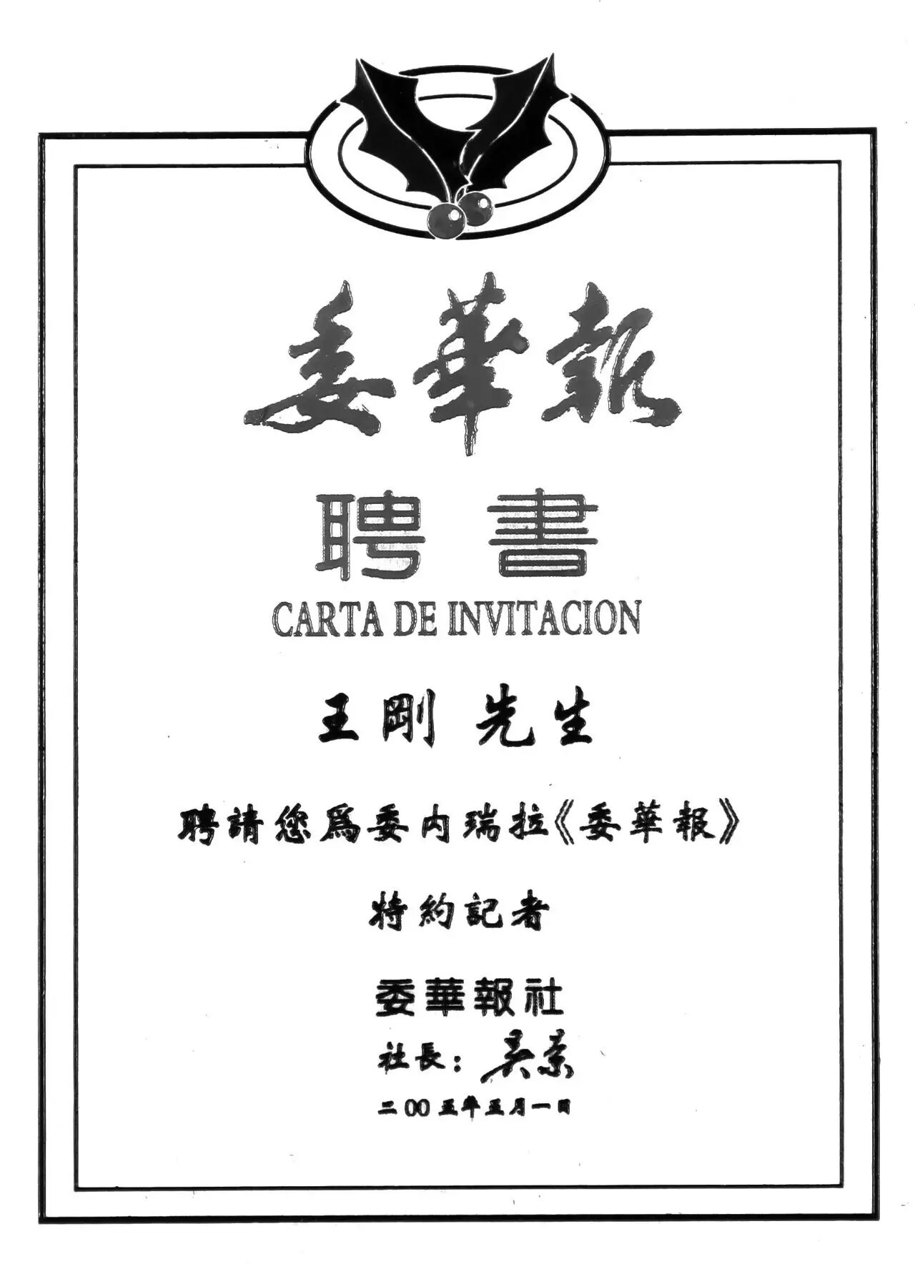 早在十多年前,王刚写过一篇文章——《我是一只漂泊的船》,抒发着一种努力掌舵却拗不过命运激荡的无奈感。海外漂泊的十几年中,他满怀讴歌生活的冲动和感谢命运的情结,在海外华文媒体发表了十多万中国文字,还被《委华报》聘为特约记者。
