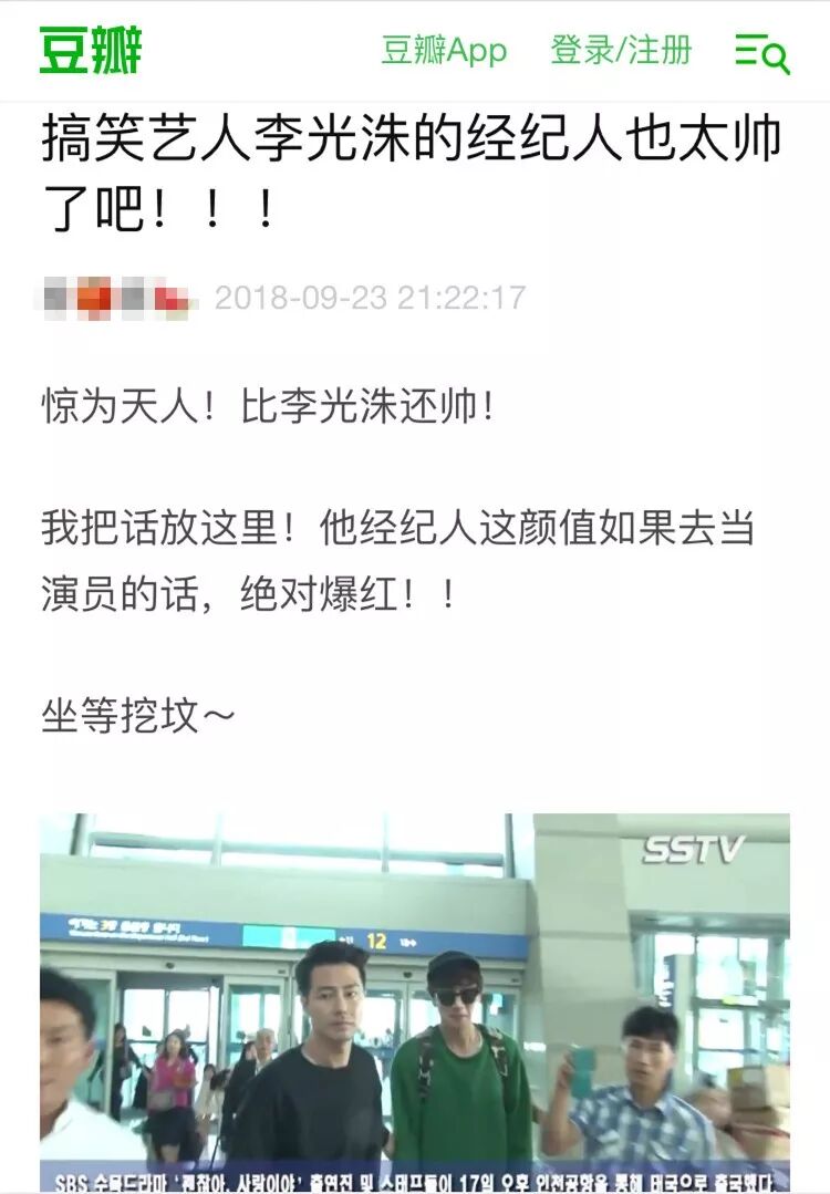 小编定睛一看,热搜上这个豆瓣的帖子里,这位网友表示“李光洙旁边的这位经纪人也太帅了吧!他的颜值去当演员绝对爆红,坐等挖坟”。