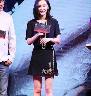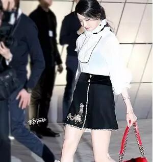 同样一件蓝色短裙,杨幂搭配同色系上衣,并且戴着一条过长的胸链,,不免让人觉得有点老气横秋。再看林允儿,搭配一件复古蕾丝上衣,气质清纯迷人。