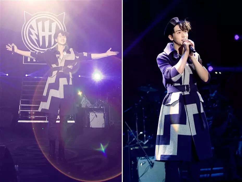 上海演唱会上许魏洲尝试Louis Vuitton大衣配贝雷帽的组合,显得可爱帅气。值得一提的是,许魏洲也是第一个在演唱会上穿Louis Vuitton的内地男歌手。