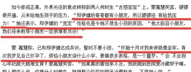 丁克是他们的共同决定,这跟蒙嘉慧的原生家庭同样有关系,她怕生一个像妈妈一样任性的孩子,一辈子都要为她操心,加上郑伊健性格太温和,不太会教育孩子,所以他们就决定不生,而且郑伊健的哥哥也有孩子,满足了他父母抱孙子的愿望。