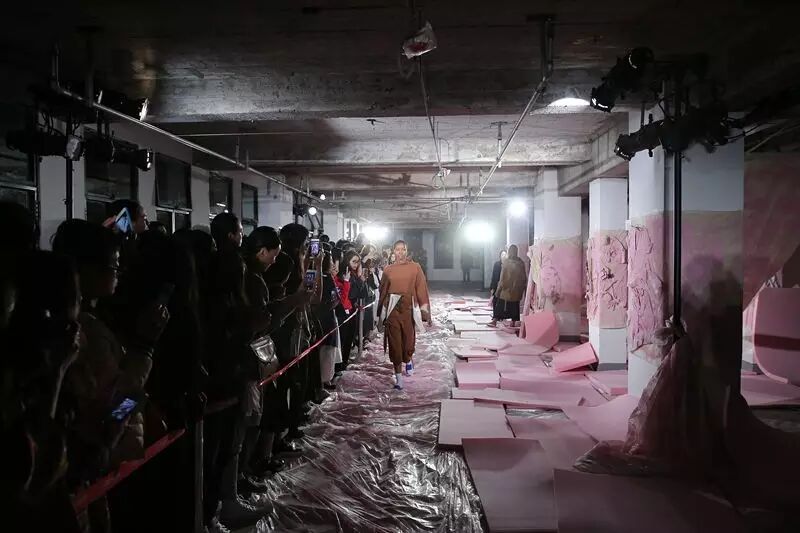 不仅走秀的方式和妆容与众不同,模特们身着的服装也充满了叛逆不羁的气质。