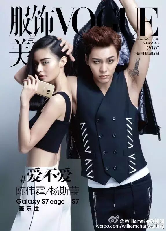 可是还没来得及好好把陈伟霆舔一遍,粉丝们就纷纷发问:陈伟霆身边这个纤细漂亮的女生是谁?!为什么拿着个手机上Vogue封面?!好吧,我来给大家答疑解惑——这个女生叫做杨斯莹,是一个新锐超模,近些年凭借着立体的五官和独特的气质在时尚圈中崭露头角。而她最新的身份则是三星盖乐世S7 edge广告的女主角,这也是为什么她拿着三星盖乐世S7 edge登上Vogue封面的原因。