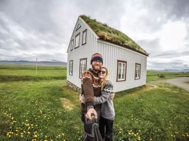 他们在冰岛的一座小房子前相拥自拍,理想中的房子和幸福生活大概就是这样的吧,远离喧嚣,抬头低眉见天地,还有你始终在身旁。