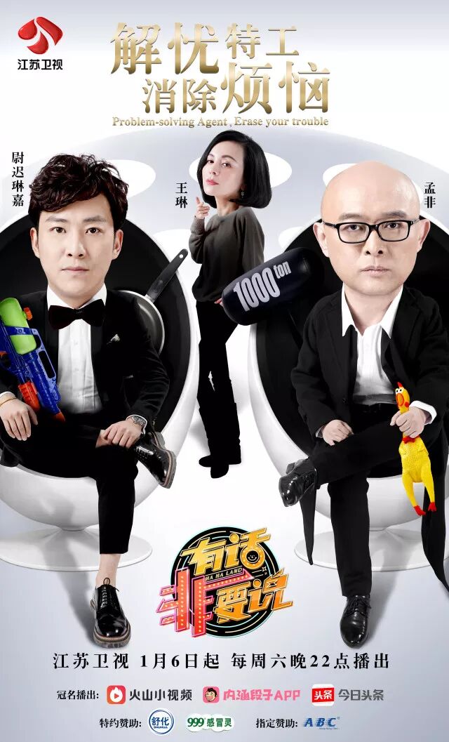 本周六晚22:00,江苏卫视全新解忧节目《有话非要说》将无缝接档《非诚勿扰》开播,主持人孟非将开启“双击”模式实力霸屏周六档,《非诚勿扰》也将调整至每周六晚20:30播出。相比《非诚勿扰》,《有话非要说》要谈及的话题范畴更广,主要聚焦百姓的幸福指数,以平等、包容、轻松、幽默的语态关怀大众的生活状态,话题既包罗万象又结合当下热点。节目由孟非、王琳、尉迟琳嘉共同搭档组成“解忧家族”为素人排忧解难。