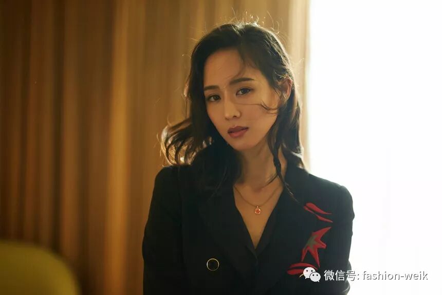 在活动现场,内搭的同样是这件黑色的衬衫,外搭换成一件黑色小西装,小深V配上Emporio Armani 现代花园系列项链,更能突出珠宝带来的时尚魅力。