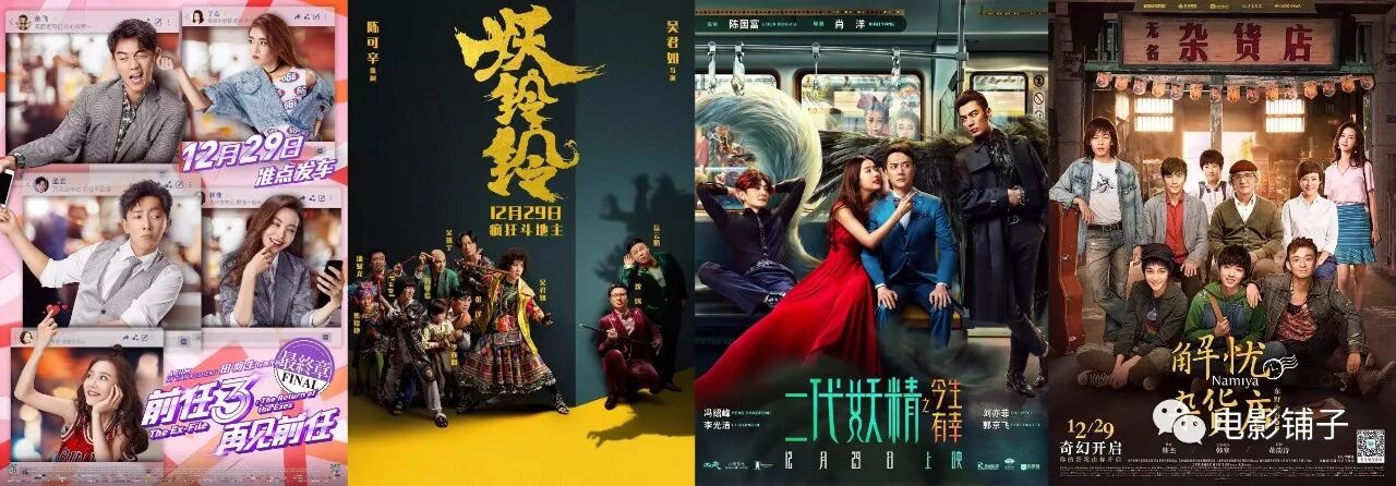 12月29日,《妖铃铃》、《前任3:再见前任》、《二代妖精》、《解忧杂货铺》四部电影同期上映。