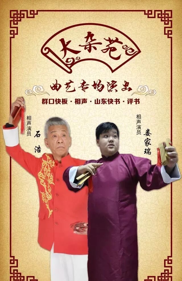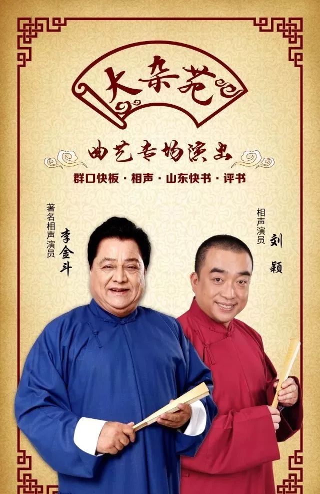 《大杂苑》曲艺专场演出,内容包含相声、快板、山东快书、评书、东北大鼓等各种丰富的曲艺形式。