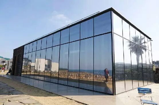 伴随着一天不同时分,玻璃墙壁上的图像也是不一样的。傍晚时分,夕阳落在玻璃上,不要太浪漫哦!