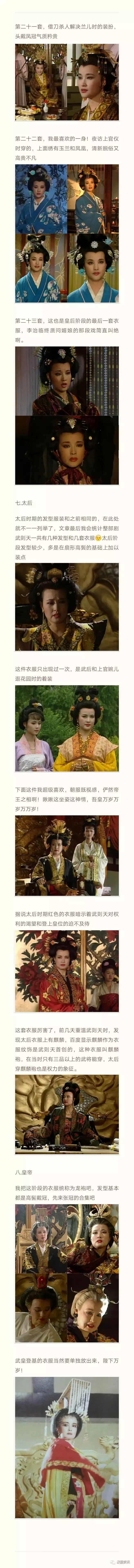 该剧造型杨树云,化妆毛戈平,服装李建群,这是一部尊重历史的经典之作 旧唐书有记载初唐较为保守女子出门要遮面,所以武则天不可能袒胸露背,95阿武出门也都佩戴帷帽,参考书籍杨树云《唐风流韵》 、《中国古代服饰》。