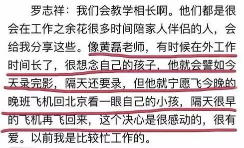 极限小伙伴罗志祥这么说:譬如今天录完影,隔天还需要录,但他宁愿飞今晚班飞机回北京看一眼自己的孩子,隔天很早的飞机再飞回来,这个决心是很感动的,很有爱。