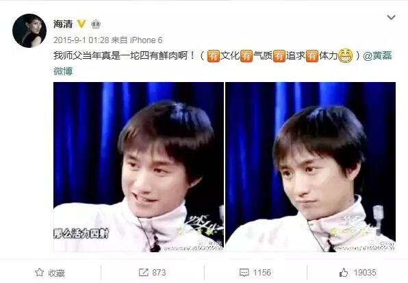 不仅好友小宋佳感叹黄磊的颜值,学生海清也在微博上秀出黄磊那些年的青春时光~
