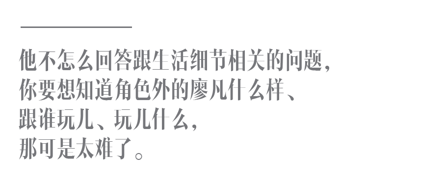 说真的,采访前被勾勒的他可不是这样的。传闻说,廖凡不是一个容易的采访对象,他不接刻意的话茬,更看重某种瞬时的连接。