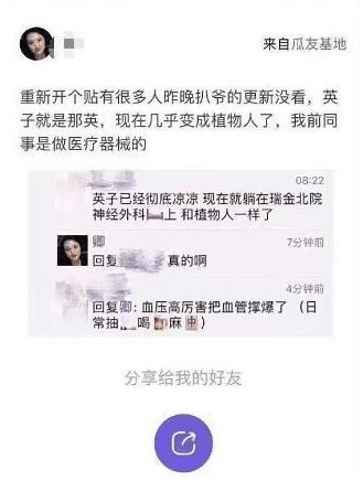 但是近期网上有消息传出最近那英因为长期酗酒而导致血管爆裂成了植物人,看到后小编也是一脸懵逼的,虽然从那英的言谈举止中可以看出那英是一个非常豪爽的人,也是一个地地道道的东北妞儿,喝酒可能是有的,也许是因为长期的工作压力导致,但是目前有这种消息传出,可能是因为那英真的是身体有不舒服到医院做检查的缘故.