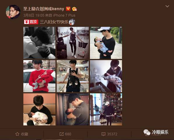 我去刘洲成的微博看了一眼,置顶微博就是九张好爸爸照片,确实不太能感受得到父女情谊,孩子更像刘洲成的耍帅工具