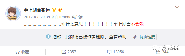 至上励合这个组合,也算是国内相当早的男团,一首棉花糖火遍大江南北,然而这个组合很快就走向了分崩离析。2012年的时候刘洲成突然发了条微博,撕了至上励合的牌子,说老子不干了,张远赶紧转发说至上励合不会散