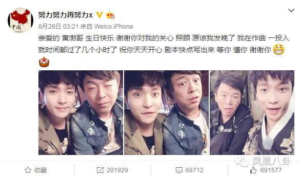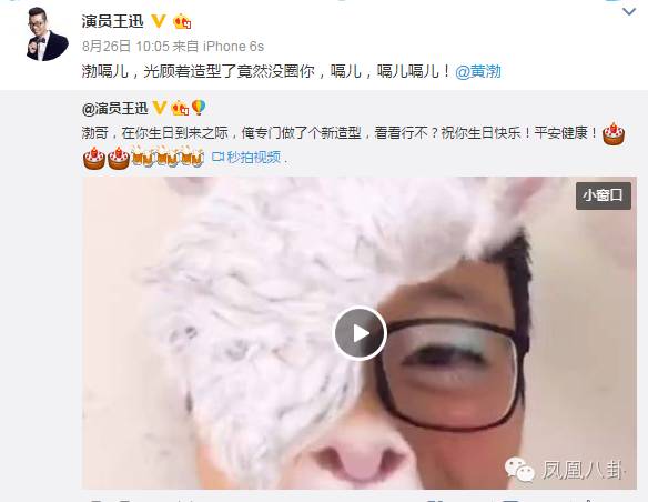 王迅更是为了黄渤的生日特意做了个“造型”……第一次发的时候忘了@黄渤,还发了两遍~呆萌本质尽显!