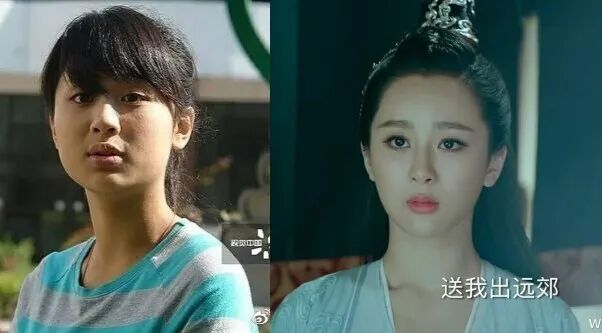 欧阳娜娜的额头和嘴巴都比较凸,中庭又很凹,所以侧面线条尤其虐。