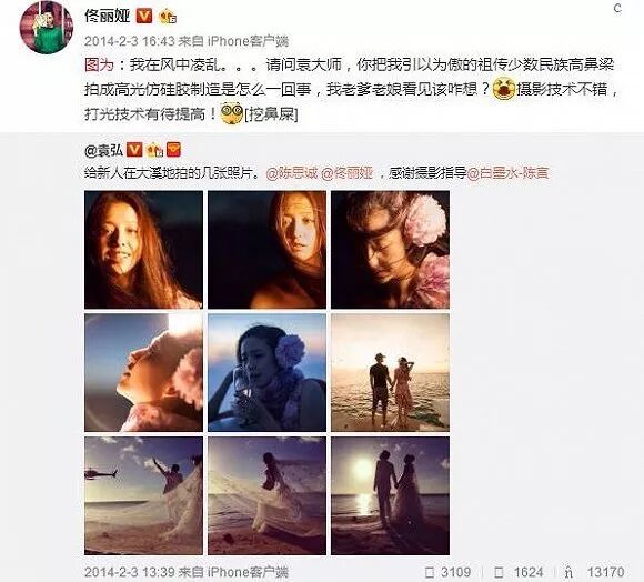 气的佟丽娅发小论文吐槽袁弘的打光技术。