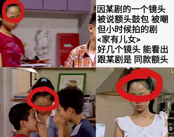 在《家有儿女》中,好几个视频截图都能看出来,跟现在是同款额头。