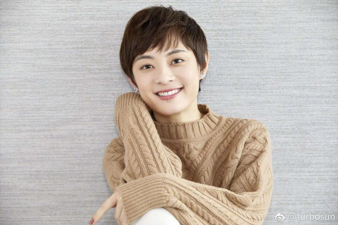 她的正脸很元气少女。