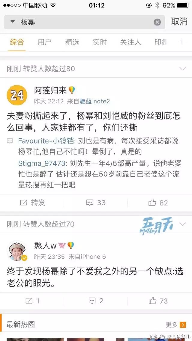 杨幂和刘恺威倒是没什么大的问题爆出,不过他们俩的粉丝已经开始撕了。