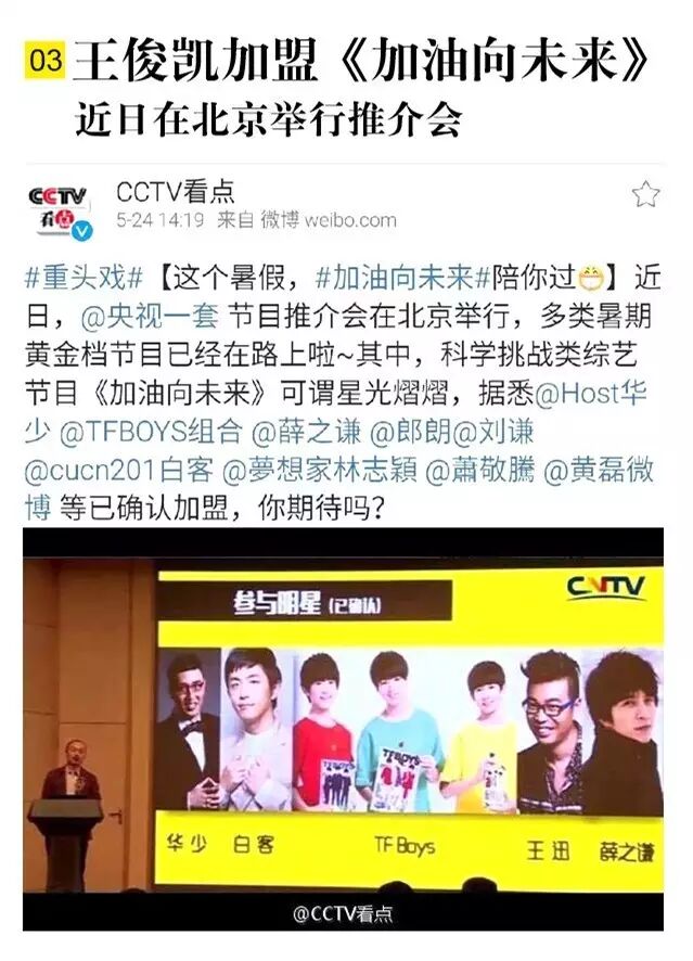 王俊凯KING记晚报 第五十六期 王俊凯KING周刊 内地男星 2016-05-24 21:44:33 306 创作不易,用心坚持,欢迎请BaGua喝几杯爱心咖啡!打赏并支持本文 打赏并删除本文 【KING记晚报 今日头条】20160524第五十六期 #大哥快到碗里来# @TFBOYS-王俊凯 献唱央视《快乐成长》六一晚会,加盟CCTV《加油向未来》。玩转芬达燃味罐子舞,撩妹满分。获新浪明星榜第三名。领舞担当王俊凯《青春修炼手册》帅气逼人。完美演绎signature piece衬衫受瞩目。 #遇见另一个王俊凯# 小碗带你回顾今日资讯! 创作不易,用心坚持,欢迎请BaGua喝几杯爱心咖啡!打赏并支持本文 打赏并删除本文 感谢您的支持鼓励,我会继续努力的!文章地址:用户邮箱:打赏金额:USDT 请输入数字点击”去打赏“,即可进行打赏支持本文章哦 王俊凯 About the Author 王俊凯KING周刊 功能介绍:王俊凯粉丝自创周刊,介绍王俊凯和他的故事 Related Posts 王俊凯KING周刊 |【第一百二十期】美好时光 2017-05-08 22:20:55 王俊凯KING周刊 【七十五期】恭喜毕业 2016-06-27 22:19:52 王俊凯KING记晚报|第七十八期 2016-06-27 22:19:51 王俊凯KING周刊 【七十四期】灵魂画手 2016-06-20 22:18:05 王俊凯KING记晚报|第七十三期 2016-06-20 22:18:04 发表评论