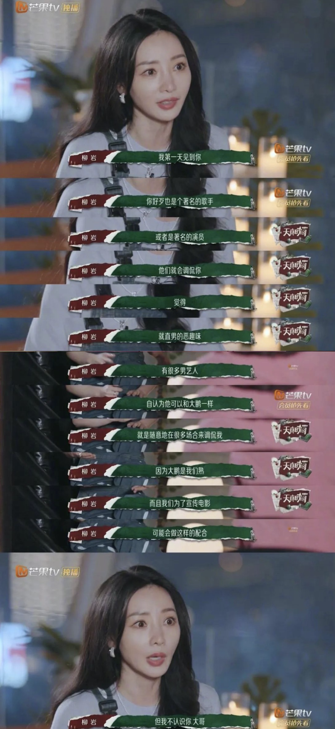 这些男艺人会在节目中毫无顾及地开她身材的玩笑,即便在拍摄间隙,柳岩明确表达了自己的不满: