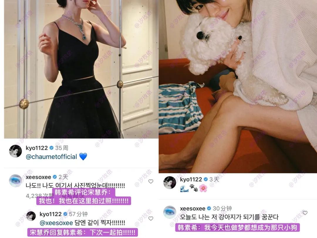 怪不到还有网友调侃“想看两个大美女亲嘴谈恋爱”“支持宋慧乔二婚”这样的留言~