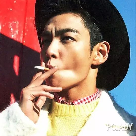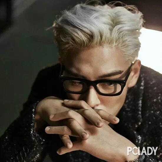 可以看出TOP十分执着于这类霸道总裁的发型,金色也很好的凸显出他健康黝黑的皮肤,戴上眼镜,更显得霸气又绅士。