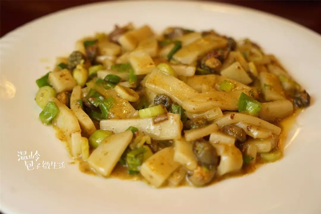 年糕柔韧有嚼劲,搭配岩蒜的独特风味