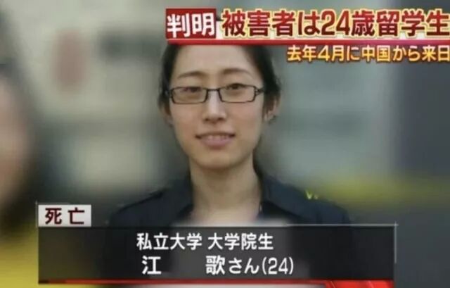 11月3日凌晨,日本东京中野区,中国女留学生江歌在其租住的公寓中遇害。犯罪嫌疑人后被证实是江歌的“闺蜜”刘鑫的前男友陈世峰。案发数月前,犯罪嫌疑人陈世峰曾与刘鑫共同居住,由于两人发生矛盾,刘鑫提出分手后,要求搬至位于中野的好朋友江歌住处居住,江歌同意。后陈世峰因拒绝刘鑫提出的分手要求,多次前往江歌与刘鑫的住处对二人进行骚扰。