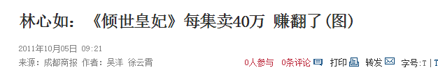 是啊,靠自己努力挣来的钱别人没有权利指指点点,林心如是名副其实的“土豪”。2009年开了自己的工作室,首次制作的剧《倾世皇妃》就收视大好,紧接着她又制作并主演资金过亿元的古装剧《秀丽江山》,就凭如此林心如早已是年入几千万的制片人,赚到盆满钵满。