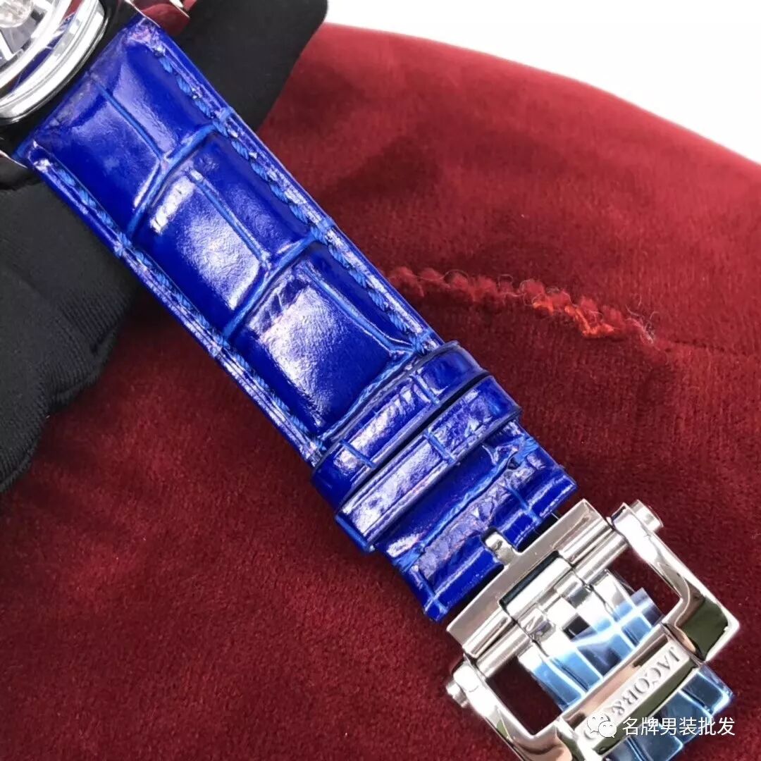 而且特别在今次表身没有刻意设下JACOB & Co.品牌标记,配合原装裂纹真皮表带,感觉上更加高贵耐看,完全适合新一代时尚人士喜爱低调中渗出独特品位的形象。在气派万千闪烁亮丽的表面下,仍可清楚看到整桂表盘的镂空体现,让他感受到回头率百分百。
