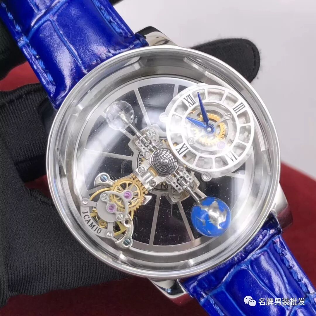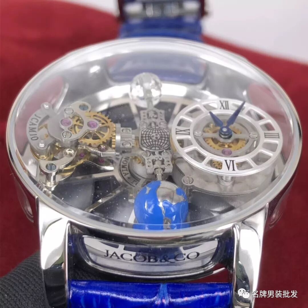 这只Jacob&Co三重重力天体陀飞轮腕表,首先它的外形很怪,穹面外形,在穹面蓝宝石水晶表镜下完美呈现地球的运转,全透明外露设计,能够清楚看见机芯陀飞轮运作情况。