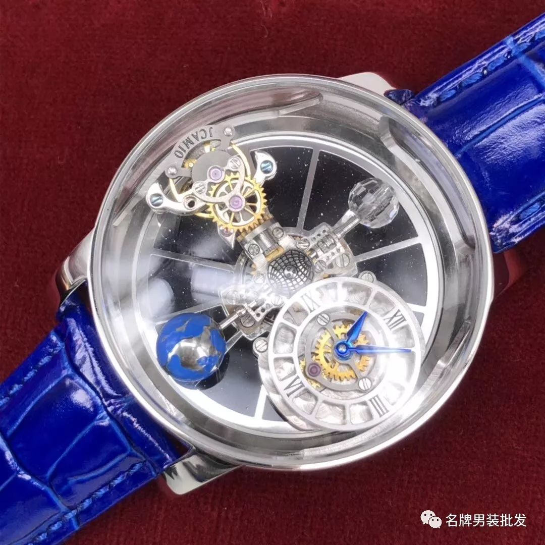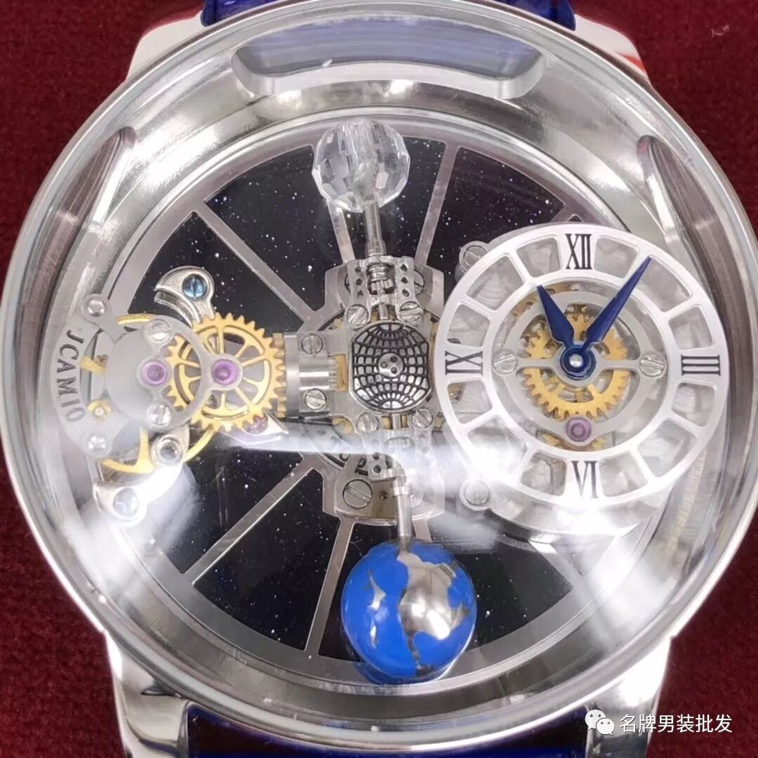 重点.第四颗就是我们看到的那个闪闪发光旋转钻石。为了模仿巨大的空间感,其表盘的背景由沙金石制成,就犹如覆盖着无数闪烁的星星。为了能让这款精美的Jacob&Co.天文陀飞轮腕表的宇宙视觉效果更加完整,制作者还以蓝色水晶包裹的玫瑰金作为其表壳。试想下拥有这款腕表就如同时间和空间奥秘永远在的手边,是你超凡脱俗、风华绝代、气宇不凡最好的象征。簡直就是独一无二,上手效果绝对能达到你想要的效果与感觉。非一般的感觉男人必定拥有他---尼古拉斯.赵四~~!!!