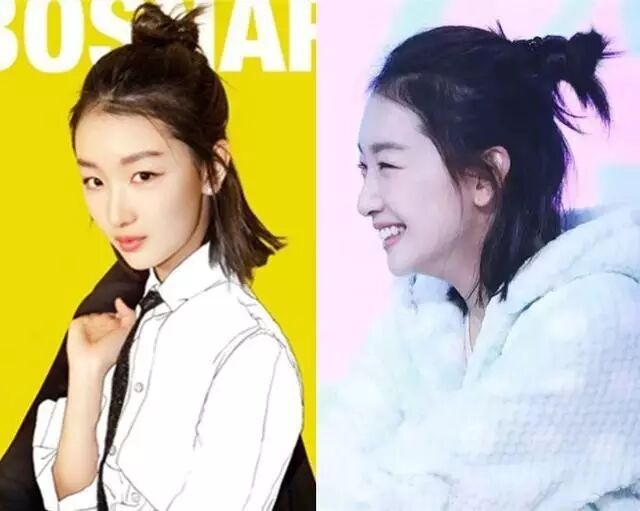 周冬雨的齐肩版半丸子头非常漂亮,结合了长发版的淑女气质和短发版的俏皮感,是一款百搭的万能发型!