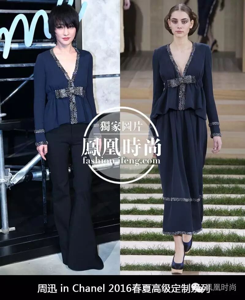 迅哥身穿Chanel 2016春夏高定系列上衣搭配高腰阔腿裤,160cm瞬间穿出了170cm的即视感,迅哥果然会穿~