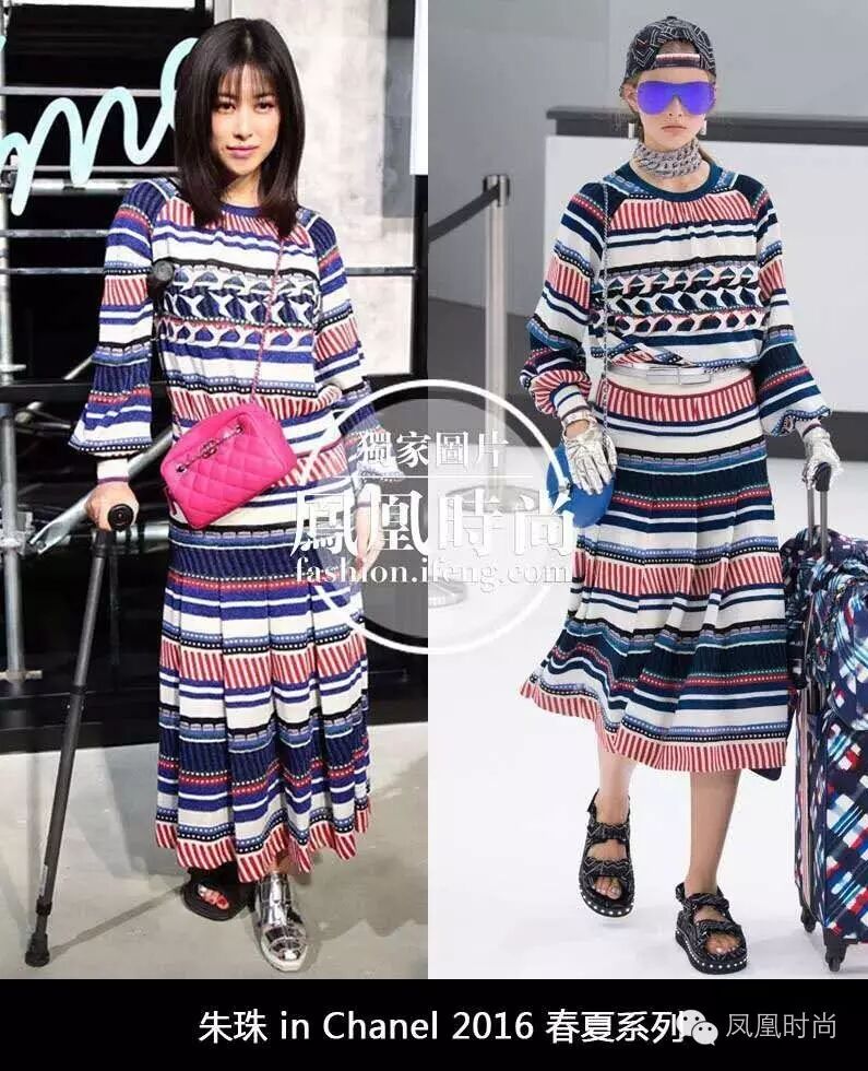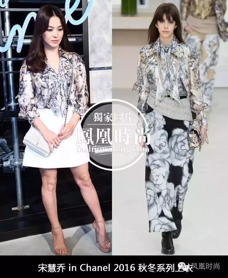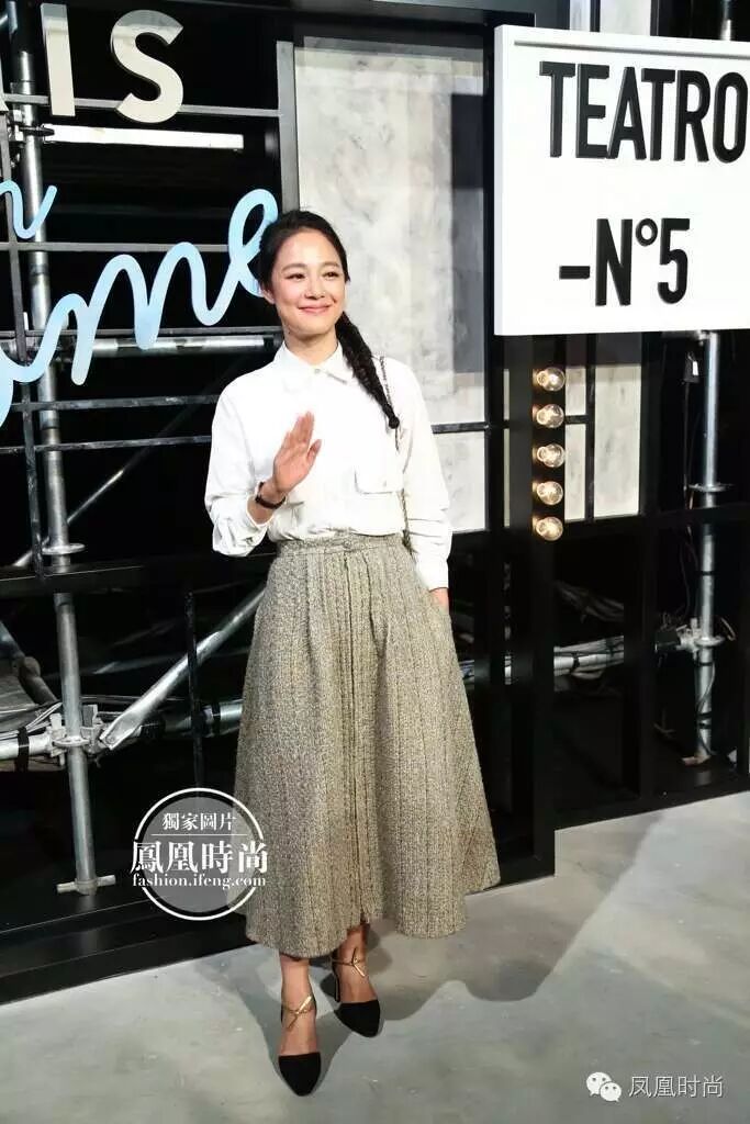 乔妹也来啦~身穿Chanel 2016秋冬系列印花衬衣搭配白色A字裙,甜美又清爽~