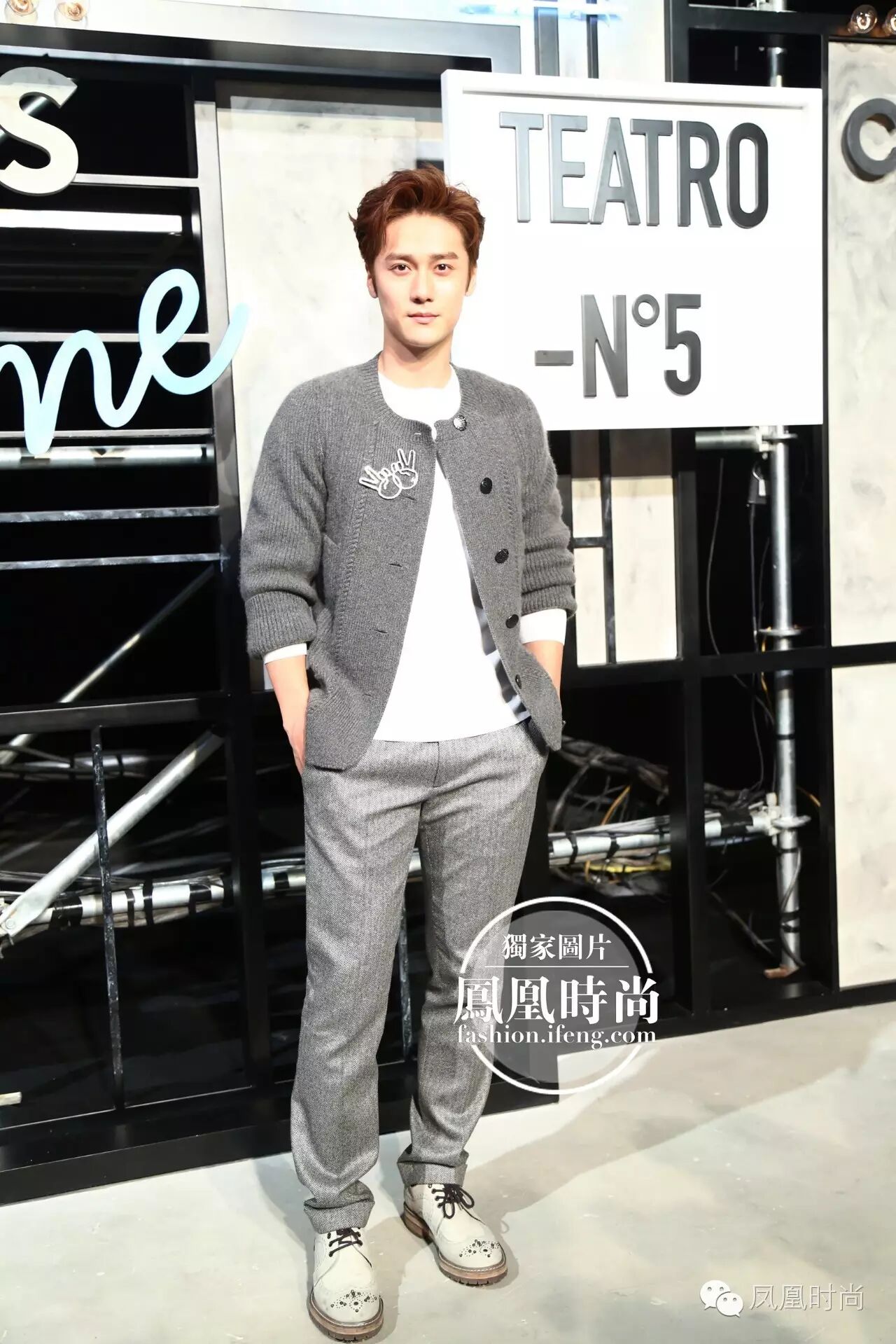 蒋劲夫身穿简单的灰白搭配也可以时髦亮眼,夫仔好帅气。