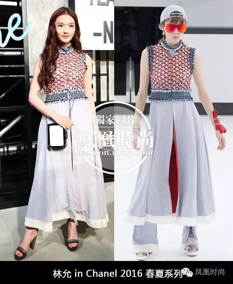 林允:是我跟香奈儿造型师一块选的,因为它裙子色彩非常鲜艳,有一种撞色感。