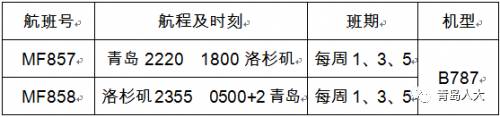 青岛12月直飞洛杉矶,每周三班