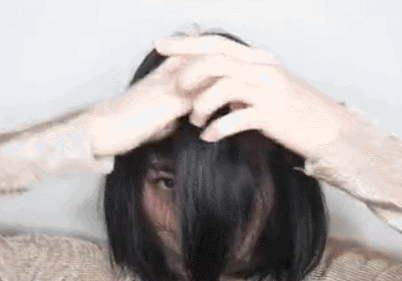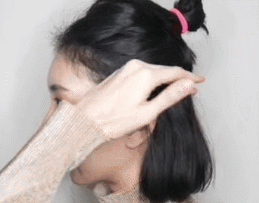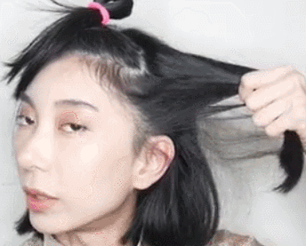 放下上半部分头发后以太阳穴垂直为界线重新为头顶头发分区。