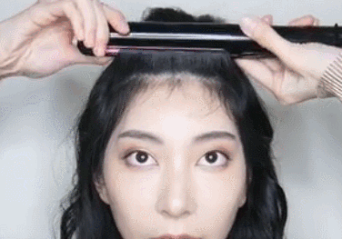 以卷发棒横向平行于额头卷完头顶剩余发量。