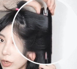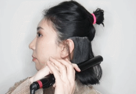 用卷发棒以平行脸颊的角度由内往外的作出卷度。