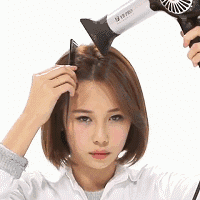 卷发方法:用手分出发际线,用电吹风吹一吹。再用夹板往内卷发尾的同时往前拉一拉,看似不经意又自然的短发出完成了。