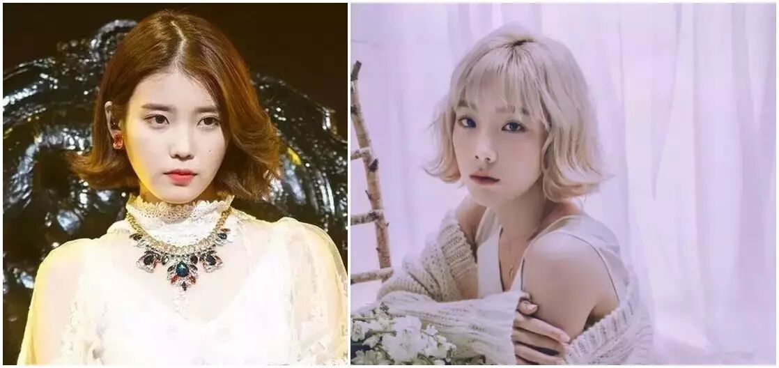 本身甜美的IU做起外翘看起来冷艳了不少,她染的蜜糖棕是个显白的发色,使本身就白的IU更白了。其实白皮肤可以选择冷色系的染发,金泰妍的冷色系染发就非常搭配她白嫩的肌肤。